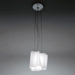 Artemide Logico mini sospensione 3 in linea; Michele De Lucchi e Gerhard Reichert designers. Materiale: vetro soffiato e alluminio. Lampada a sospensione, coordinata con i modelli da tavolo, terra, parete e soffitto. La forma modulare si presta alla componibilità e alla realizzazione di combinazioni personalizzate. Colore: struttura grigio alluminio, diffusore bianco. Adatta ad illuminare spazi di media dimensione, perfetta sul tavolo da pranzo. Codice prodotto: 0697020A