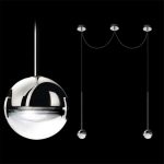 Cini e Nils Convivio New Led lampada a sospensione, Luta Bettonica e Mario Melocchi designers. Una piccola lampada a sfera (diametro 11 cm.) metà lente trasparente e metà metallo cromato o nero opaco. Luce uniforme adatta ad illuminare un grande tavolo da pranzo che un piccolo tavolo da bar, senza abbagliare chi sta intorno. Una cupola di luce omogenea che crea un mondo personale ed intimo. Codice prodotto: 1860L cromo e lente trasparente – 1888L nero opaco e lente trasparente.