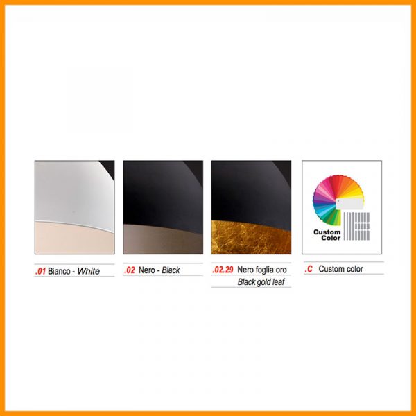 Egoluce Giove lampada a sospensione di grandi dimensioni in quattro finiture di colore: completamente nera (interno ed esterno), nera in esterno foglia oro in interno, completamente bianca, nero esterno con interno bianco. Lampadina LED E27 max 18W (da acquistare separatamente).