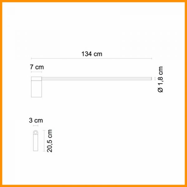 Egoluce Lancia Parete LED cm. 134; P.Pepere designer. Lampada da parete orientabile (160°) a luce diffusa con struttura in alluminio verniciato bianco o nero, diffusore in metacrilato opale, tappi in metallo. LED 22,5W 2700K (luce più calda), 3000K (luce calda) o 4000K (luce diurna) CRI>90 con alimentatore incluso. I LED CRI 90 garantiscono un’ottima resa cromatica e un alto confort visivo. Codice prodotto: 4570