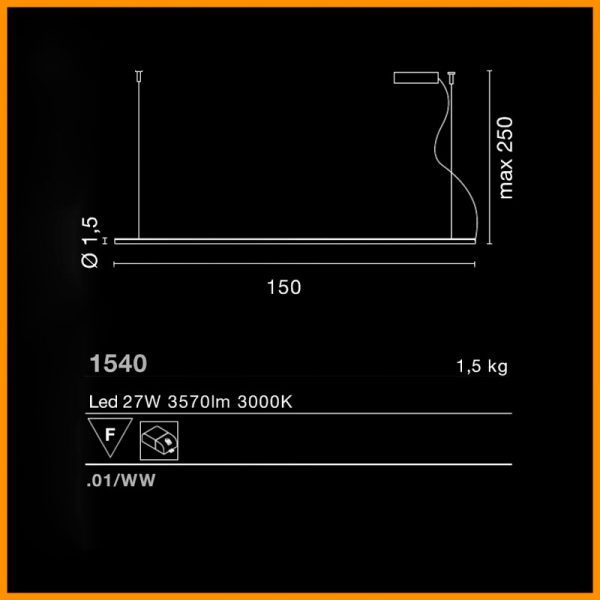Egoluce Lancia System lampada a sospensione LED cm.150, P. Pepere designer. Serie di lampade a sospensione orientabili. Struttura in alluminio verniciato nel colore bianco o nero con diffusore in metacrilato satinato completo di rosone tondo e alimentatore. Led 27W disponibile a 2700K (luce più calda), 3000K (luce calda) o 4000K (luce diurna) con alimentatore incluso. A richiesta le versioni a sospensione sono realizzabili in misure speciali, da un minimo di 102 cm a un max di 302 cm, con taglio ogni 25 cm. Lineare e pulita arreda ed illumina ambienti sia domestici che lavorativi. Codice prodotto 1539.
