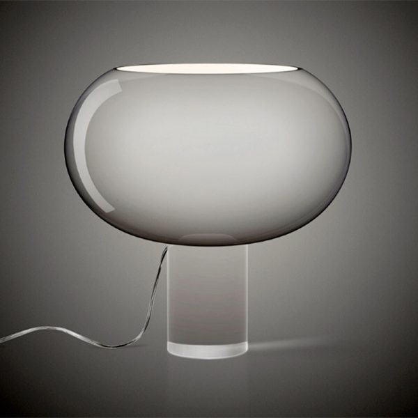 Foscarini Buds 2, lampada da tavolo in vetro soffiato nel colore bianco caldo o grigio. Predisposta per una lampadina fluorescente o LED attacco E27.