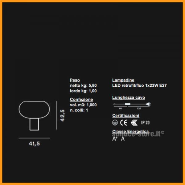 • Dimensioni: diffusore d. 41,5 cm. altezza totale 42,5 cm.
