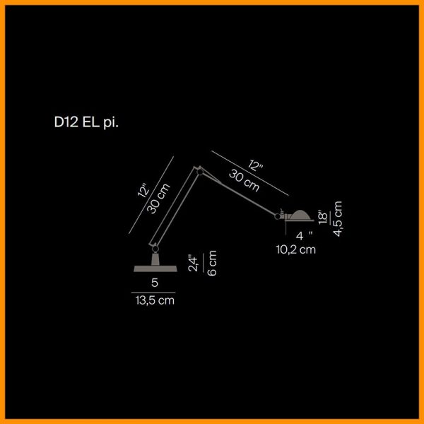• Dimensioni: bracci 30 + 30 cm. base Ø 13,5 cm.