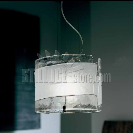 Mazzega1946 (Riflessi) Radius lampada a sospensione, M M design. Diffusore in vetro lavorato a mano con finitura satinata. Struttura in metallo cromato lucido. La caratteristica di Radius sta nel diffusore.  Quest’ultimo presenta diverse fasce, le fasce centrali sono cristallo satinato mentre le fasce esterne possono essere cristallo trasparente, ambra o rosso. Grazie allo stile ricercato è possibile posizionare questa collezione sia in ambienti classici che moderni. Codice prodotto RADSOMSM