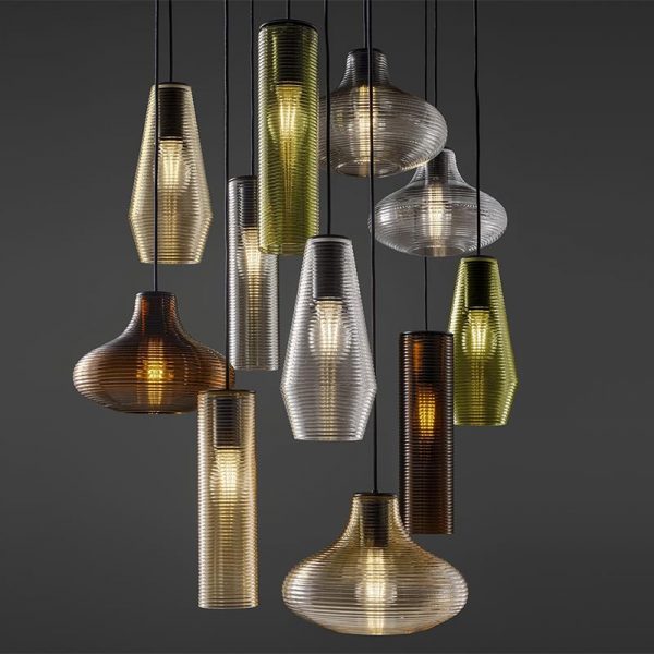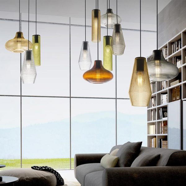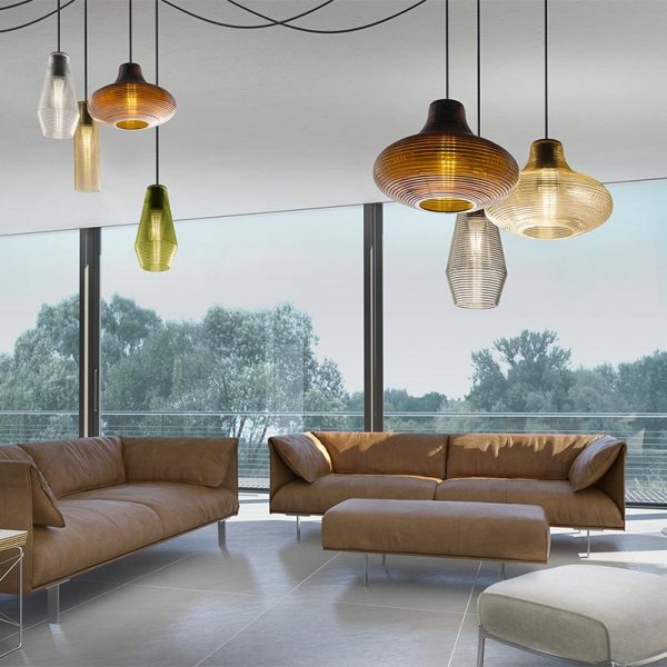 Panzeri Olivia sospensione d. 13 cm. senza rosone; Silvia Poma designer. Materiale: vetro soffiato + mt. 3,50 cavo colore nero e appendimento in policarbonato. Sospensione in vetro soffiato a fermo, finitura particolare a coste disponibile nei colori: bianco, cristallo trasparente, acciaio, ambra, bronzo, verde e tabacco. Per l’installazione è da completare con il rosone cod. M91/94/97 (da acquistare separatamente), rosone con max 8 + 1 uscite per effettuare composizioni con più lampade Olivia (anche miste con sospensione Clio e Emma). Olivia ha una emissione di luce diffusa perfetta per ambienti di media-grande dimensione in composizioni multiple. Completa di lampadina attacco E27 LED filamento a vista potenza 8W 2700K 1050lm. Codice prodotto: M097